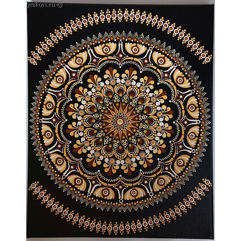 Malovaná mandala, plátno, akrylová barva, povrchová úprava lak