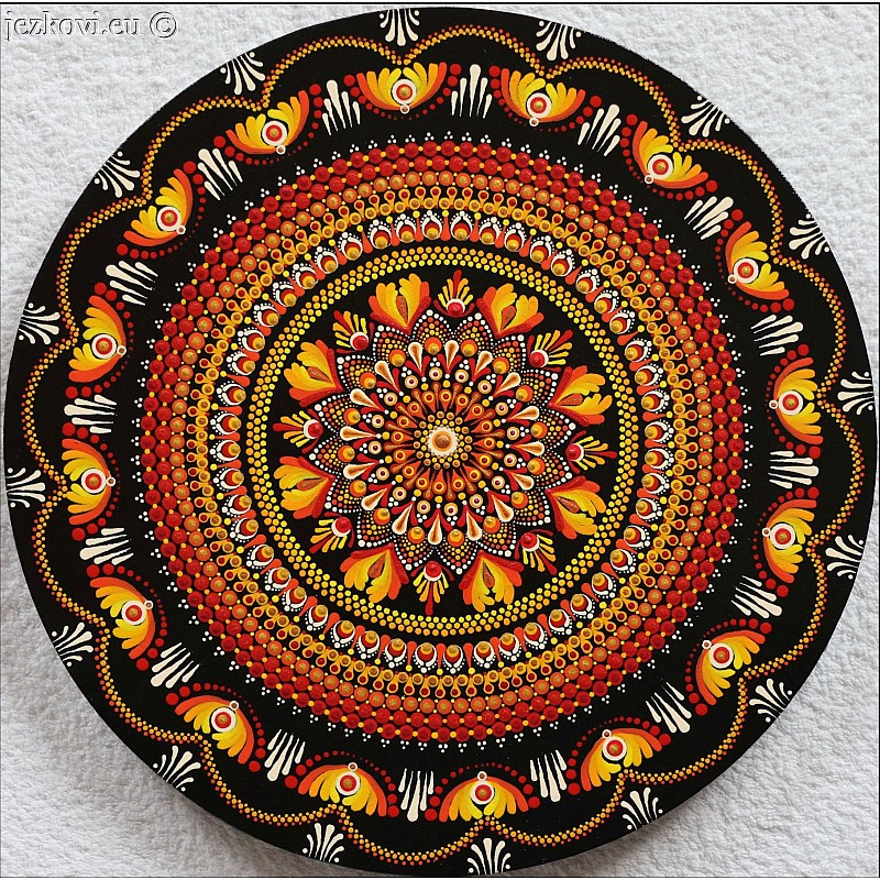 Malovaná mandala, plátno, akrylová barva, povrchová úprava lak, průměr 30 cm