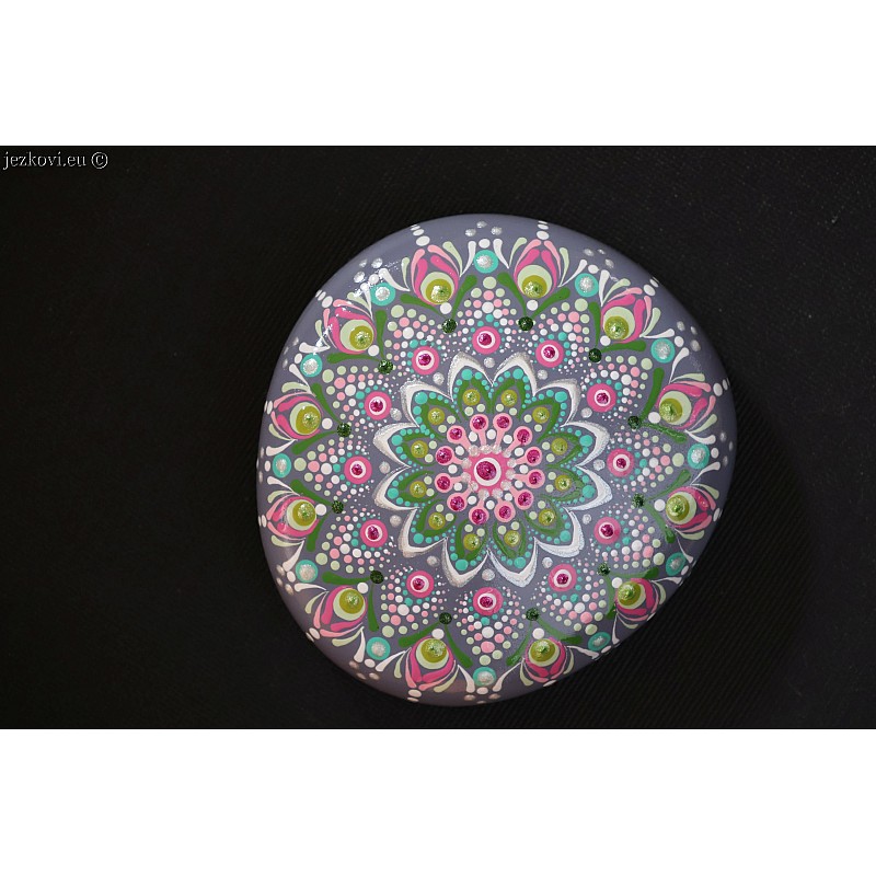 Umělý kamínek (odlitek) ručně malovaný. Akrylová barva, povrchová úprava lak. Vhodný pro interní i externí použití. Mandala pro potěšení, relaxaci, přísun energie, dobrou náladu, meditaci....