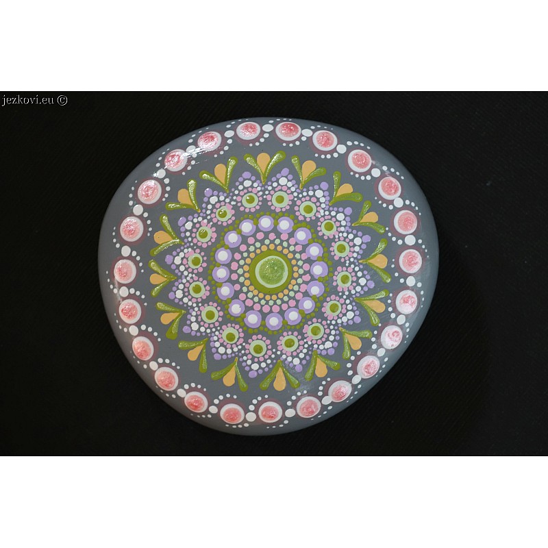 Umělý kamínek (odlitek) ručně malovaný. Akrylová barva, povrchová úprava lak. Vhodný pro interní i externí použití. Mandala pro potěšení, relaxaci, přísun energie, dobrou náladu, meditaci....
