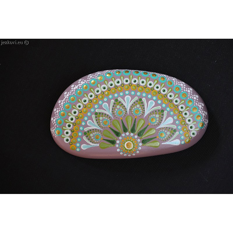 Umělý kamínek (odlitek) ručně malovaný. Akrylová barva, povrchová úprava lak. Vhodný pro interní i externí použití. Mandala pro potěšení, relaxaci, přísun energie, dobrou náladu, meditaci....
