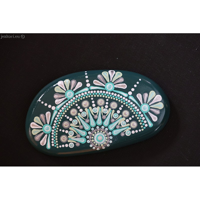Umělý kamínek (odlitek) ručně malovaný. Akrylová barva, povrchová úprava lak. Vhodný pro interní i externí použití. Mandala pro potěšení, relaxaci, přísun energie, dobrou náladu, meditaci....